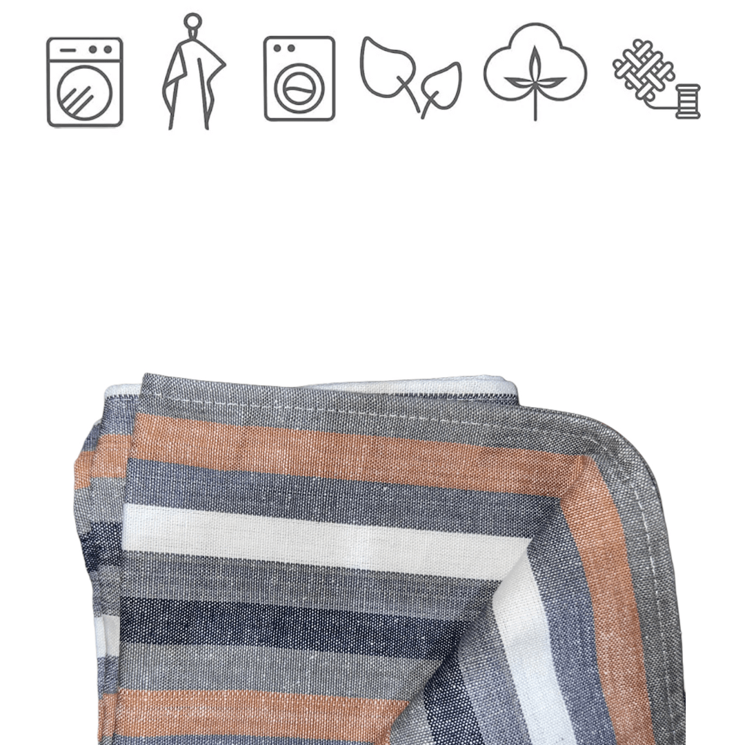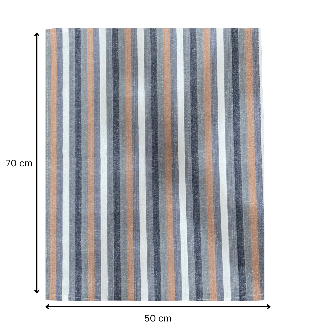 Striped cotton kitchen towels, 50x70cm, 220 GSM – absorbent, durable, and sustainably made in Pakistan.