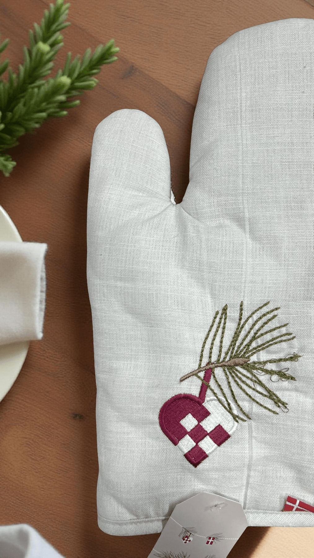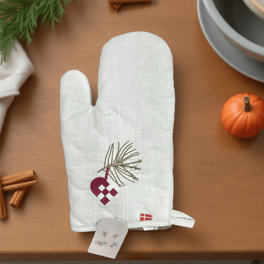 Perfect for those who appreciate eco-conscious textiles, this mitt is made from high-quality cotton and soft inner padding for protection without the bulk. The embroidery detail is subtle yet expressive, ideal for pairing with minimal holiday decor or gifting to loved ones who cherish kitchen essentials with meaning.