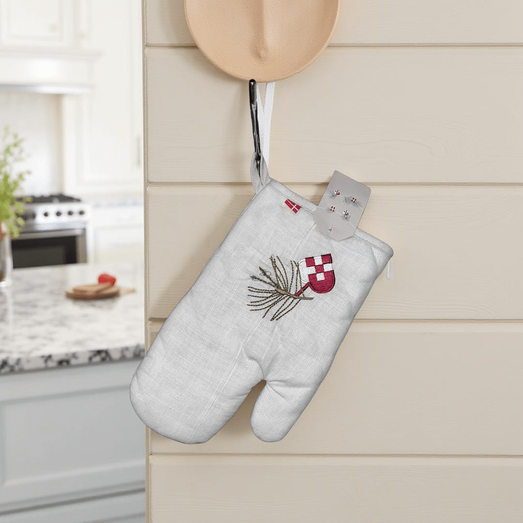 Add a festive touch of craftsmanship to your kitchen with The Berry Stem Mitt — a premium embroidered cotton oven mitt designed for homes that value both beauty and practicality. Featuring a delicate red berry stem stitched over a soft neutral base, this mitt blends timeless holiday kitchen aesthetics with everyday durability. Whether you're prepping for seasonal gatherings or making slow meals on quiet mornings, this heat-resistant oven mitt adds warmth, elegance, and handcrafted charm to your space.